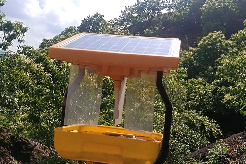 太陽能殺蟲燈原理可以簡單概括為“飛蛾撲火”,利用農業害蟲趨光性的特性,使用特定燈管釋放特定光源(365nm峰值的紫外線)誘蟲,黃色的燈體、被捕捉的害蟲性信息也能起到誘蟲的作用。光源周圍有高壓電網或者透明擋板,害蟲撲燈時碰到電網就會被電擊而死,或者碰到擋板掉進水盆,或者配風扇吸進集蟲盒,從而達到防治害蟲的目的。太陽能殺蟲燈是一種純物理方式誘捕害蟲設備,光照充電也沒有電耗,環保無污染,契合綠色農業發展理念,值得推廣。太陽能殺蟲燈種類也不少,生產太陽能殺蟲燈的廠家也不少,質量參差不齊,選購時一定要謹慎。