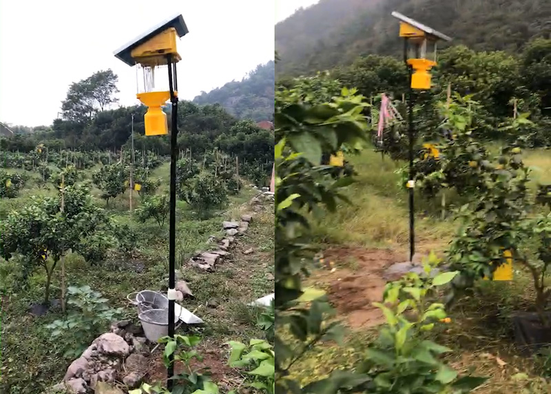 上圖:橙子果園太陽能殺蟲燈使用效果