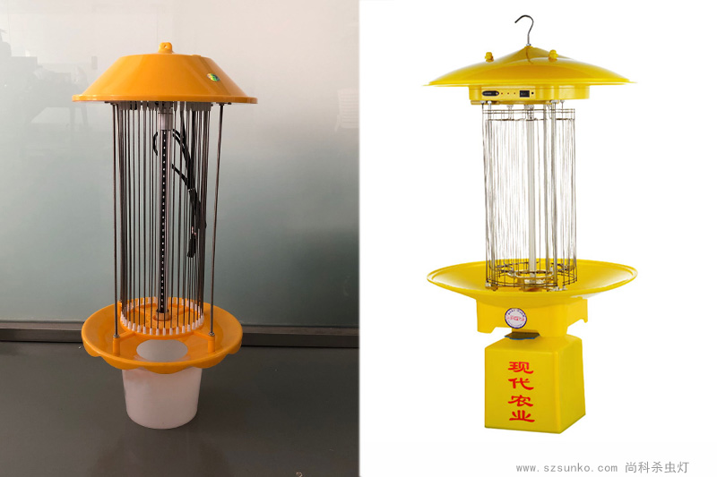 上圖:兩個小型殺蟲燈對比圖,右側是尚科小型殺蟲燈,左側是某品牌小型殺蟲燈