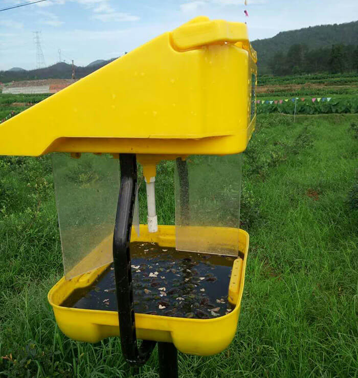 太陽能殺蟲燈還有一個優點,那就是它不需要插電,也就省去了挖溝拉線的工程。并且它能夠通過智能控制器,實現天黑燈亮,天亮燈熄,自動誘捕的全部過程,大大降低的人力投入。
