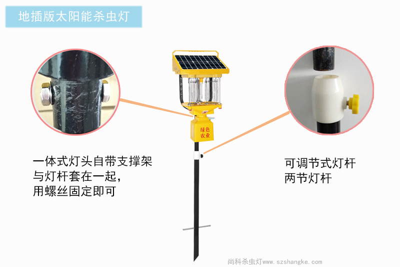 太陽(yáng)能殺蟲(chóng)燈現(xiàn)在已經(jīng)使用很普遍的植保器械了,是農(nóng)業(yè)好幫手。但還是有好多農(nóng)戶是第一次購(gòu)買(mǎi)和使用,收到太陽(yáng)能殺蟲(chóng)燈后不怎么會(huì)安裝。所以尚科小編今天就為大家介紹一下插地式太陽(yáng)能殺蟲(chóng)燈如何安裝,圖文并茂。